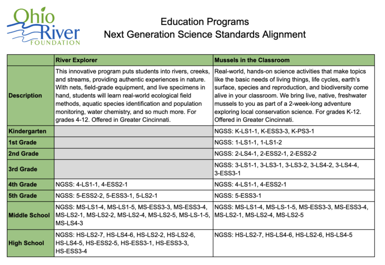 Ohio River Foundation’s Rivers to Classroom Education Access Fund offers access to our two flagship programs, River Explorer field trip (4-12 grade) and Mussels in the Classroom (K-12 grade). It provides a limited number of River Explorer field trips for free (normally $8 per student) and a limited number of Mussels in the Classroom programs for $100 (normally $200 per program).